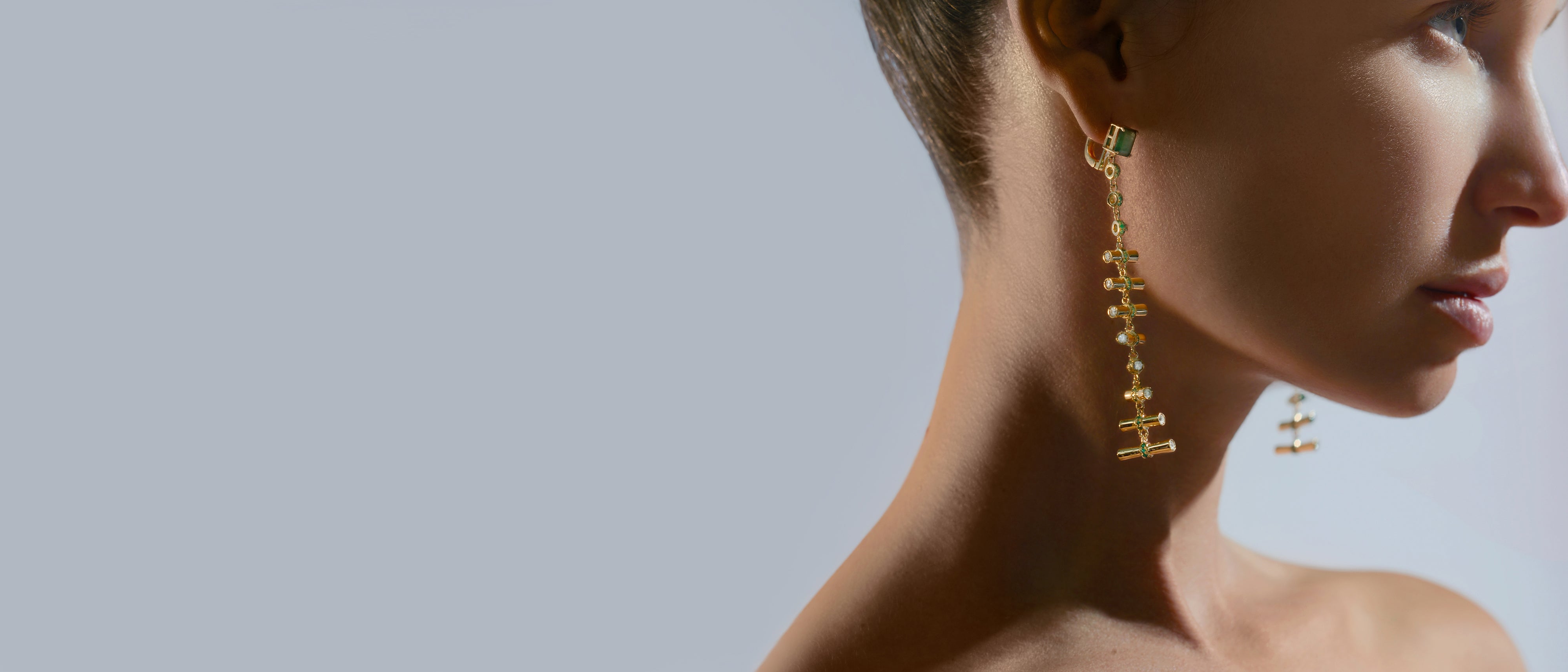Steffie Christiaens, the Founder and Creative Director, draws inspiration from a global odyssey, merging diverse cultural influences into avant-garde jewelry. These designs feature hidden symbolism, mirroring the inner beauty within us, incorporating moving elements in precious jewels.